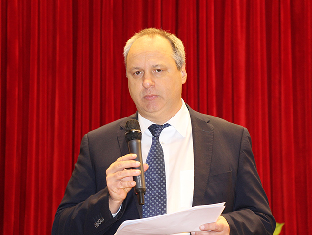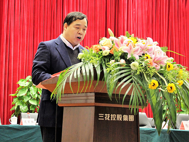 Leaders of Eight business units give a speech on annual meeting of Sanhua Holding Group.