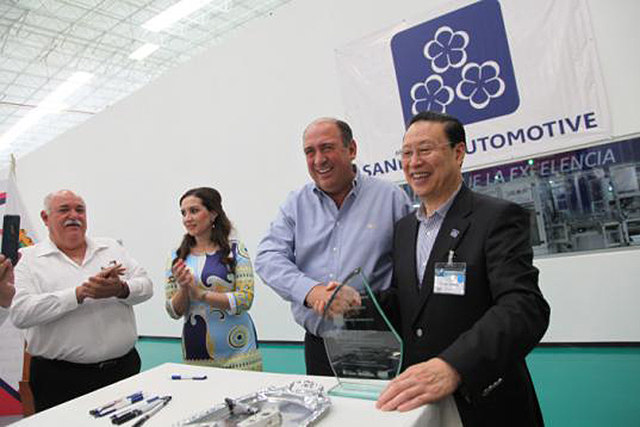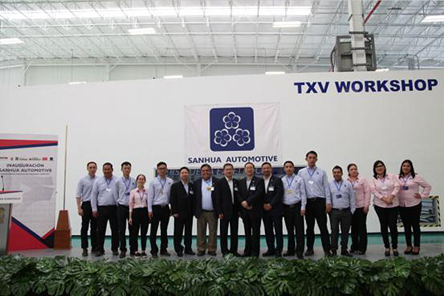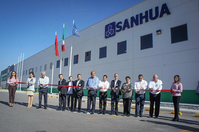 On June 20th, SANHUA Automotive held a ribbon-cutting at the opening ceremony of the SANHUA Automotive new HVAC TXV manufacturing facility in Ramos, Mexico. At the event, several SANHUA representatives including Mr. Zhang Daocai, Group Chairman, Mr. Shi Chuliang, GM of Automotive, Mr. Ni Xiaoming, GM of Micro-channel welcomed Mr. Ruben Morera Valdes, Governor of Coahuila, Mexico and 200 others attendees. The event was covered by Mexico state television and local media live reports.