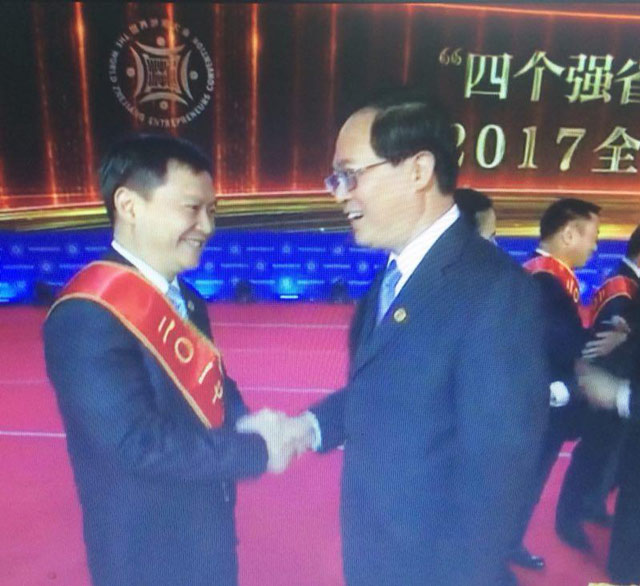 HANGZHOU, China, Nov. 29, 2017--The 4th World Zhejiang Entrepreneurs Convention held in Hangzhou International Expo Center, which focused on“Embracing a new era with open-mind and innovation”. Zhang Yabo, president of Sanhua Holding Group won “Gold Award of Zhejiang Entrepreneurs”.