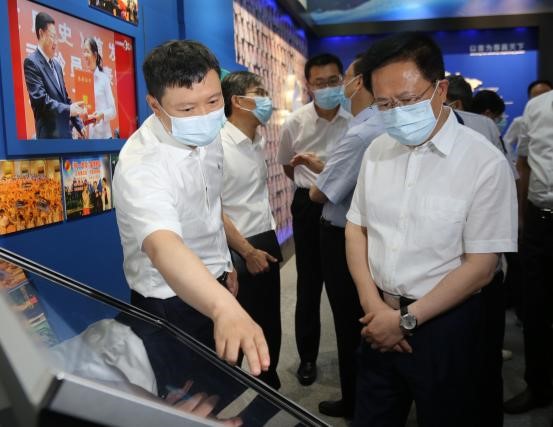 In the Sanhua Evergreen Culture Tree Exhibition area, after listening to the introductions and understanding the origin and connotation of Sanhua Culture, Governor Zheng Shanjie pointed out the culture tree of Sanhua is already lush and towering, and will be forever evergreen.