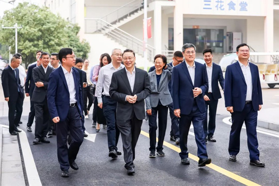 At 10 o'clock on the morning of October 16, the continuous rain ushered in a rare break. The inauguration ceremony of Sanhua Global R & D Center, one of the activities for the 40th anniversary celebration of Sanhua Holding Group, was held in front of the new office building in Hangzhou Industrial Park. A lot of honorable guests were present at the ceremony include Liang Liming, President of Chinese Society for the Law of the Sea, former Deputy Director of Zhejiang Provincial People’s Congress and Secretary of the Party Members Group, Ren Shaobo, Secretary of the Party Committee of Zhejiang University, Wu Xiaodong, Secretary of the Party Committee of Zhejiang Association for Science and Technology, Yueyang, Executive Vice President of Zhejiang Provincial Federation of Enterprises, Zhejiang Provincial Association of Entrepreneurs, and Zhejiang Federation of Industry and Commerce, Zhao Qun, Executive Vice President and Secretary-General of Zhejiang Provincial Machinery Industry Federation, and Jin Chengtao, Secretary of the Party Working Committee of Qiantang New Area and Party Committee of Qiantang District. Zhou Miaorong, member of the Standing Committee of Qiantang New Area, government officials and the directors of association. Zhang Daocai, chairman of the board of directors of Sanhua Holding Group, Zhang Yabo, vice chairman of the board of directors of Sanhua Holding Group, Shi Chuliang, president of Sanhua R&D Center, Dr. Zhang Rongrong, chief technical officer, and the heads of departments in Sanhua Holding Group and other honorable guests attended the ceremony and witnessed the historical moment of Sanhua's road to innovation.