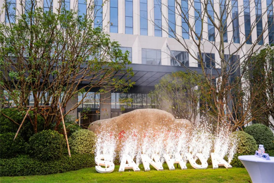 Sanhua Global R & D Center was inaugurated, and the office building was decked with flowers and words of blessings.